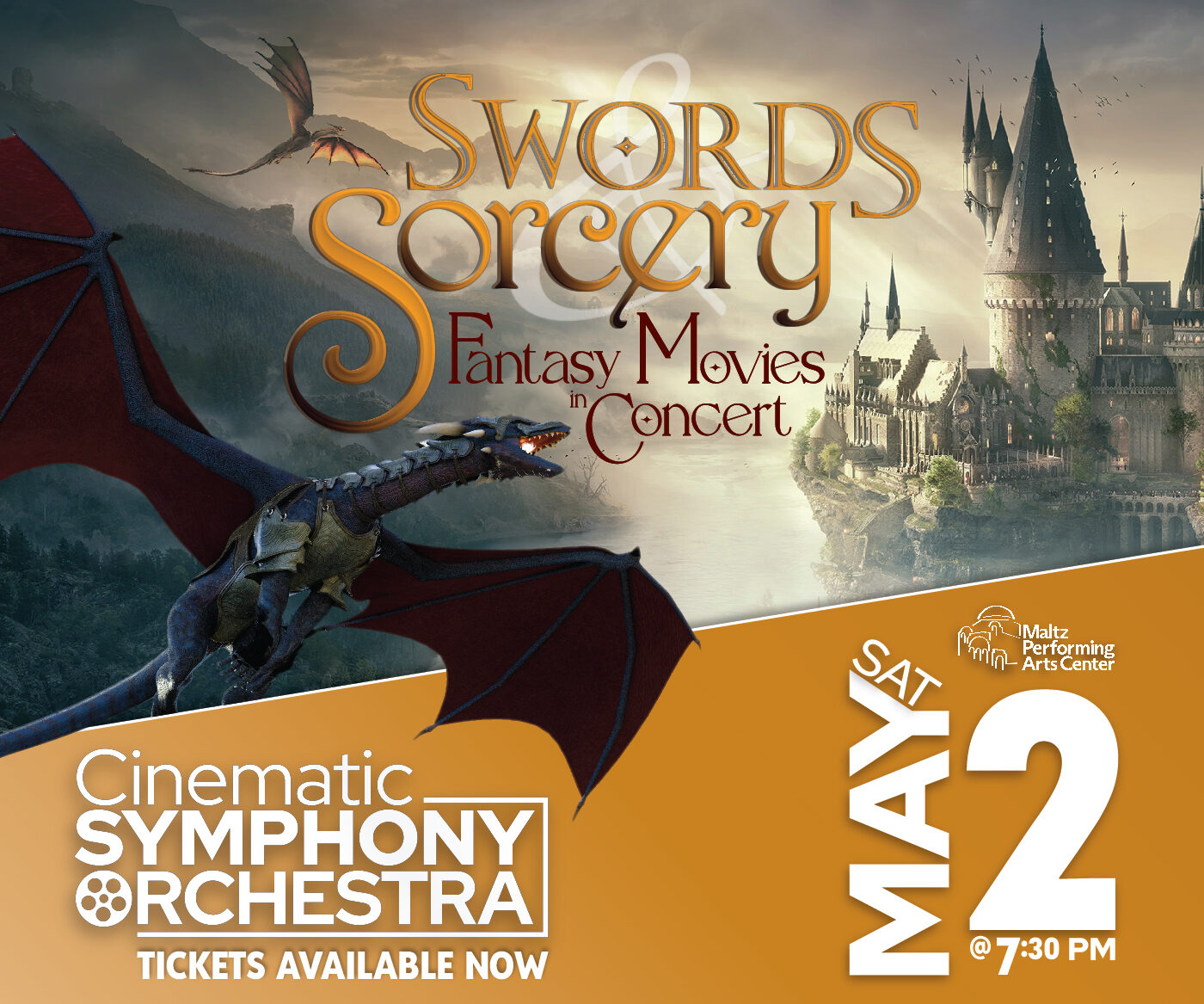 Prepare to be swept away into realms of magic, myth, and adventure as the Cinematic Symphony Orchestra presents SWORDS AND SORCERY – Fantasy Movies in Concert. On Saturday, May 2, 2026, the Maltz Performing Arts Center transforms into a portal to fantastical worlds, where sweeping strings and soaring voices bring your favorite cinematic adventures to life.
